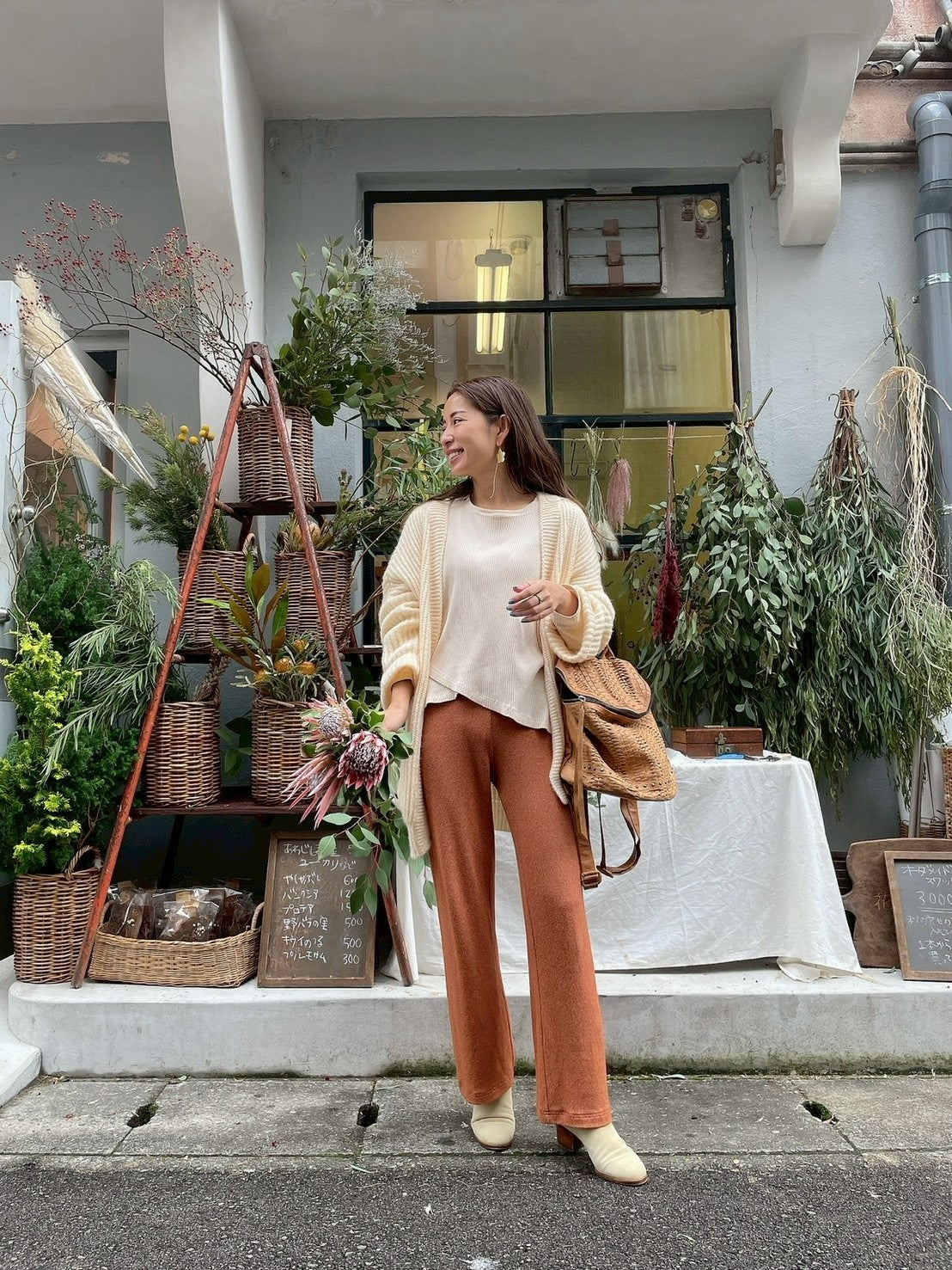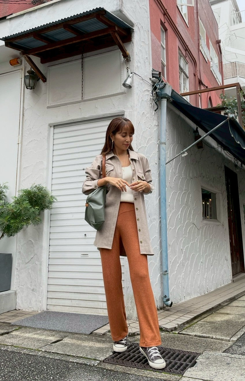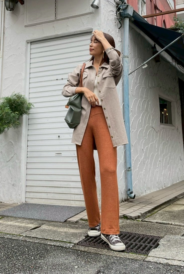 ビスコース82%, ポリエステル15%,エラスタン3%ウエスト(ゴム) 約68cm,股上 約28cm, 股下 約83.5cm