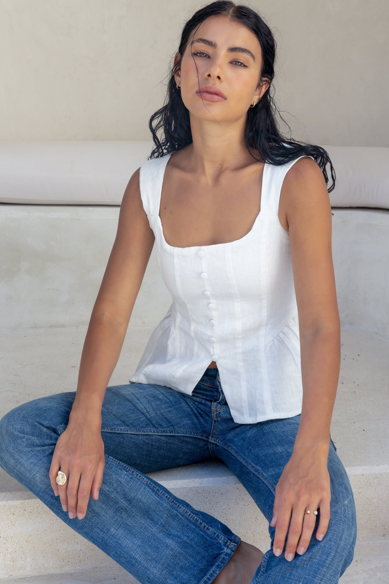 ラインにこだわったリネントップ。